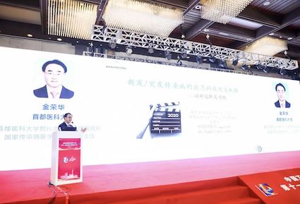 首都醫(yī)科大學附屬北京地壇醫(yī)院院長、國家傳染病醫(yī)學中心(北京)主任金榮華教授作報告