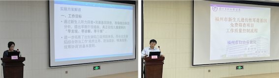 福州市衛(wèi)健委婦幼處副處長(zhǎng)劉麗特解讀項(xiàng)目實(shí)施方案(左)福州市婦幼保健院耳鼻喉科主任黃長(zhǎng)班解讀項(xiàng)目質(zhì)控流程(右)