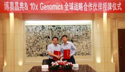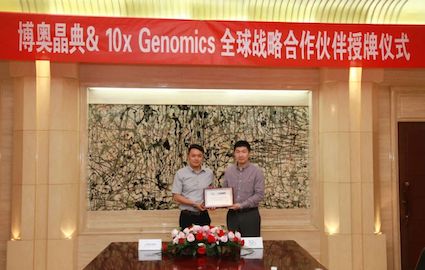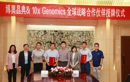 仁科生物科技集團(tuán)有限公司執(zhí)行總裁邱雁南代表10x Genomics 與博奧晶典副總裁孫義民簽訂戰(zhàn)略合作協(xié)議,10x Genomics公司中國(guó)區(qū)總經(jīng)理江滔授予博奧晶典“10x Genomics一站式解決方案全球戰(zhàn)略合作伙伴”稱號(hào),雙方旨在單細(xì)胞及空間組學(xué)等領(lǐng)域建立更為廣泛而深入的戰(zhàn)略合作關(guān)系,為客戶提供10x Genomics產(chǎn)品的一站式解決方案。