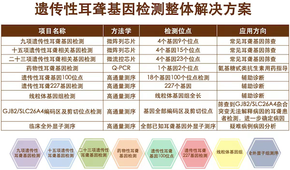 博奧晶典遺傳性耳聾相關(guān)基因檢測芯片的不斷升級迭代,有助于篩查出更多環(huán)境因素致聾基因變異的人群,盡早為其提供生活指導(dǎo),降低后天不良環(huán)境因素導(dǎo)致耳聾發(fā)生的風(fēng)險,早診斷、早干預(yù)、早治療。目前,博奧晶典已推出基于微陣列芯片、微流控芯片及高通量測序平臺一系列產(chǎn)品及服務(wù),包括:九項遺傳性耳聾基因檢測、十五項遺傳性耳聾基因檢測、二十三項遺傳性耳聾相關(guān)基因檢測、藥物性耳聾基因檢測、遺傳性耳聾基因檢測(100項)、遺傳性耳聾基因檢測(227個基因)、線粒體基因組檢測、全外顯子組基因檢測等,為孕檢夫婦、新生兒及聽障人群提供最佳的篩查、診斷方案,同時提供專業(yè)的報告解讀及后續(xù)遺傳咨詢服務(wù),以實際行動全面助力耳聾三級防控,減少聾兒的發(fā)生。